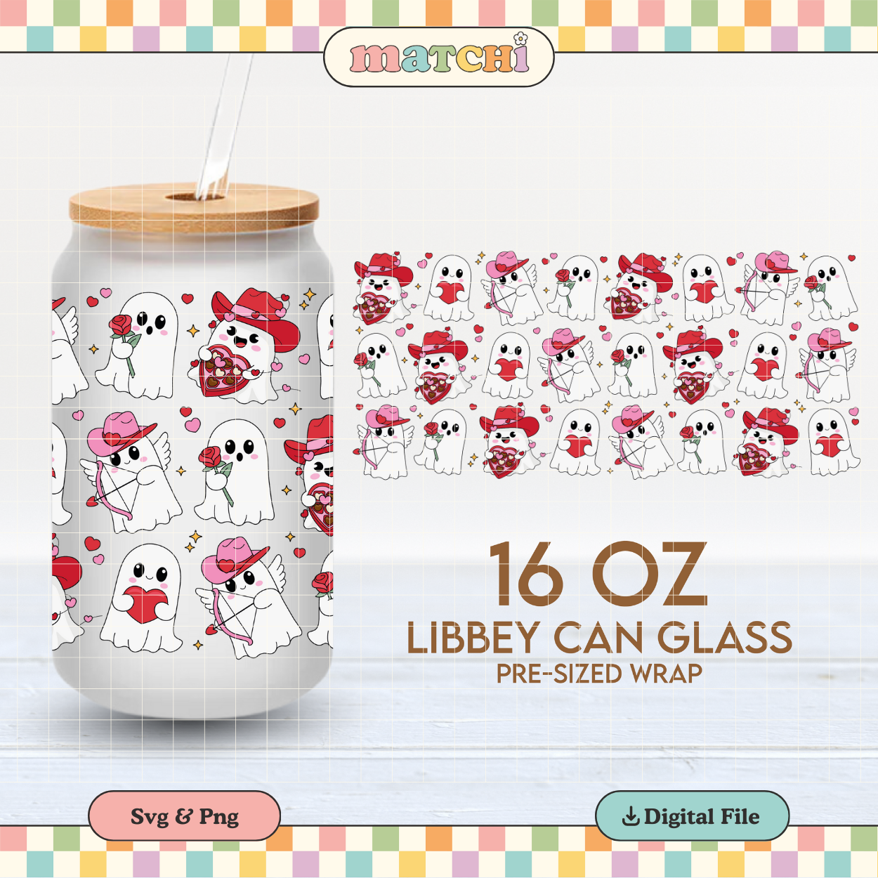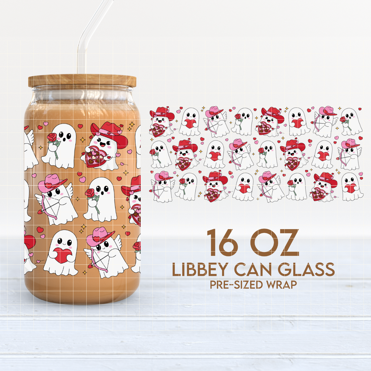 Valentines Ghosts Cup Wrap | Howdy Valentines 16oz Libbey Can Glass PNG SVG