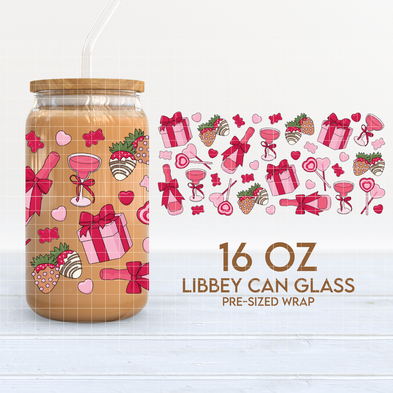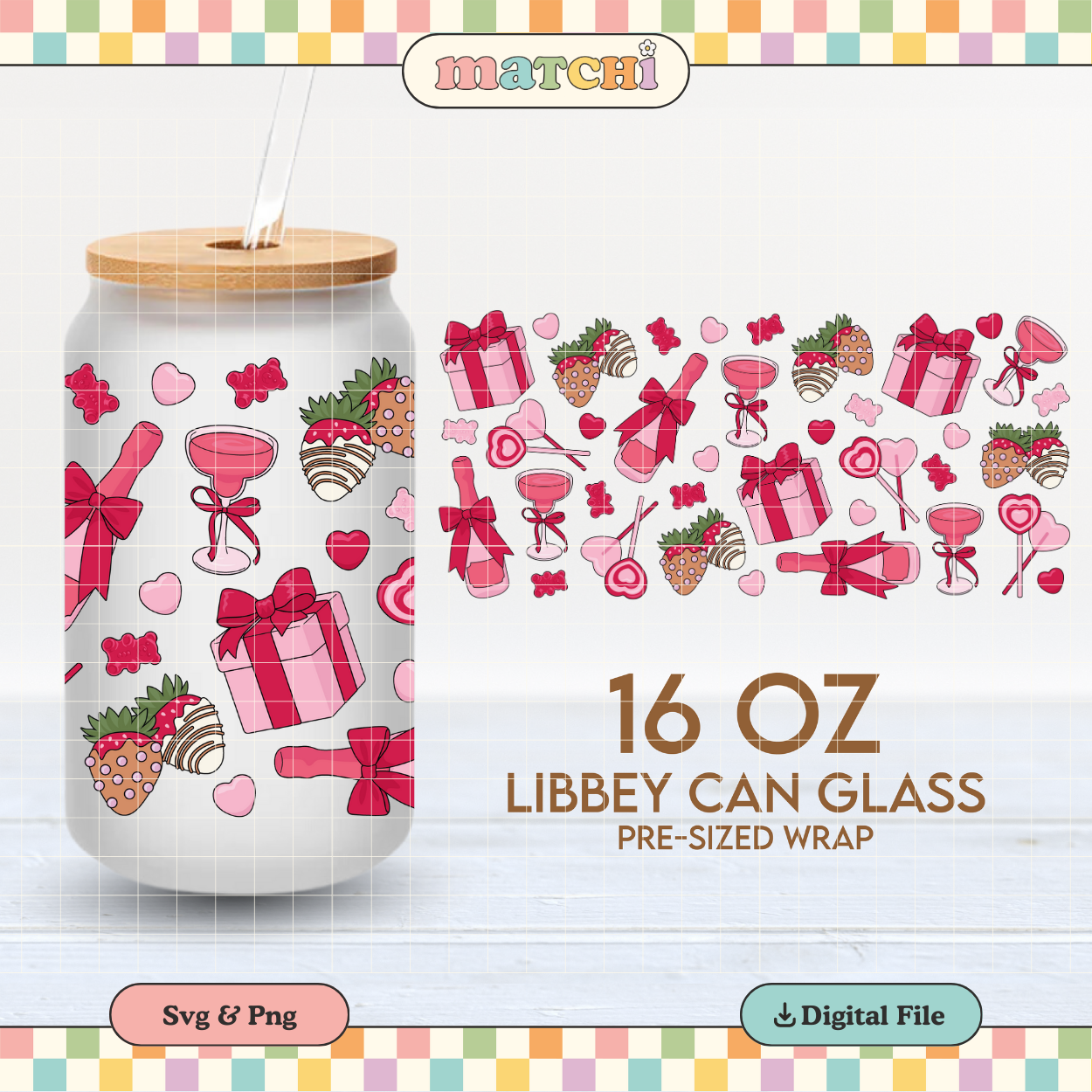 Valentines Things Cup Wrap | Coquette Valentines 16oz Libbey Can Glass PNG SVG