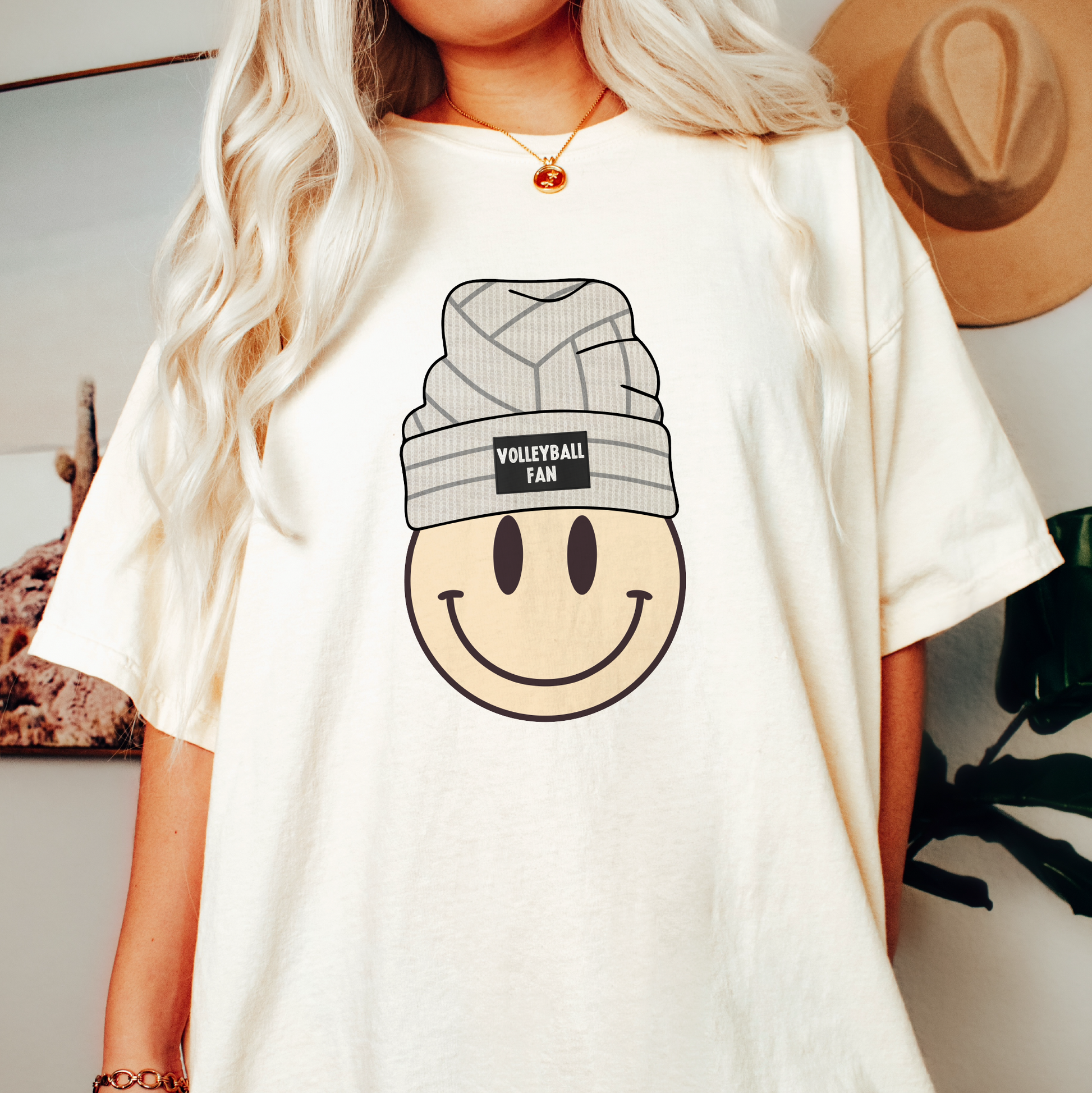 Volleyball Beanie Smile PNG | Retro Volleyball Fan Sublimation | Groovy T shirt Design