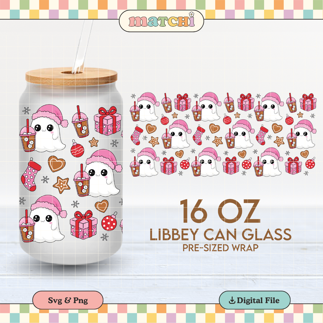 Xmas Ghost & Coffee | Girlie Christmas 16oz Cup Wrap PNG SVG