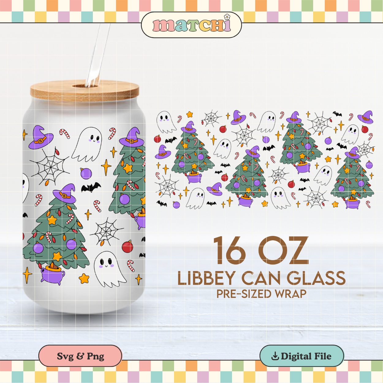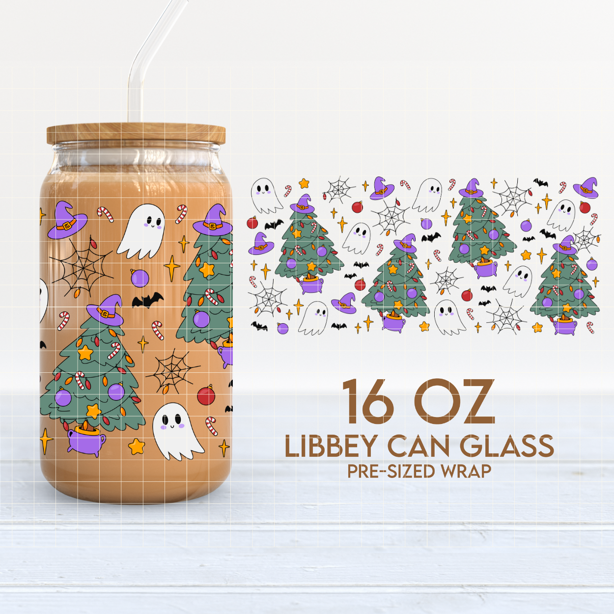 Xmas Trees & Ghosts | Spooky Christmas 16oz Cup Wrap PNG SVG